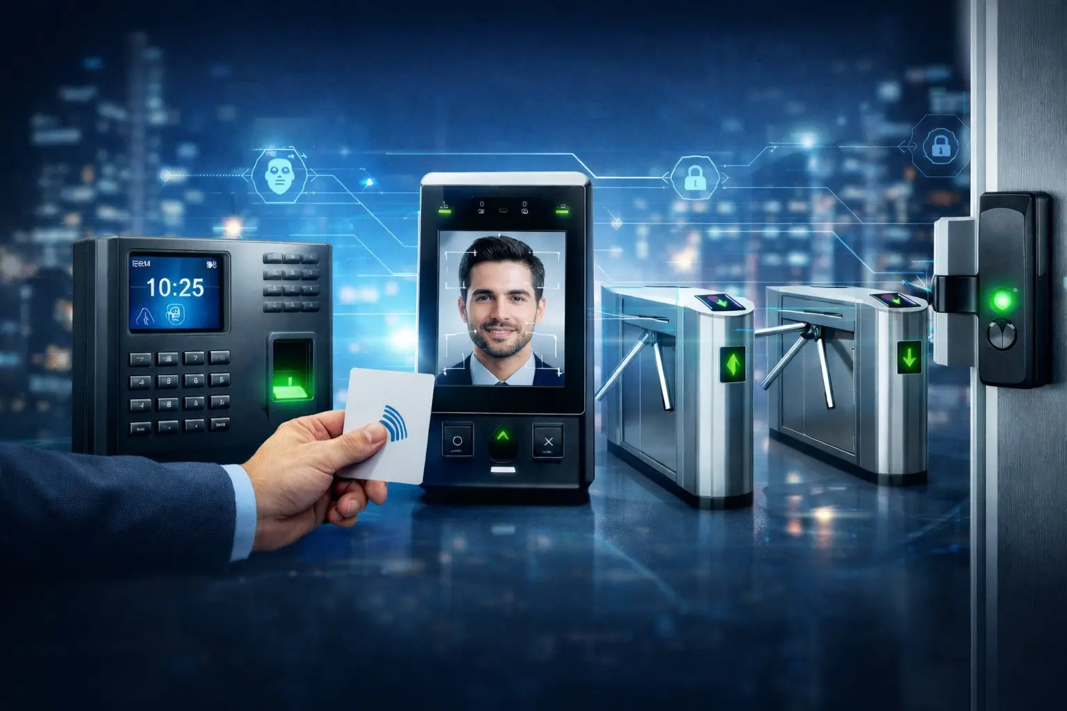 حلول متكاملة للتحكم في الدخول والخروج باستخدام أحدث تقنيات البصمة، الكروت، والتعرف على الوجه، لتأمين المنشآت وإدارة حركة الأفراد بكفاءة عالية.